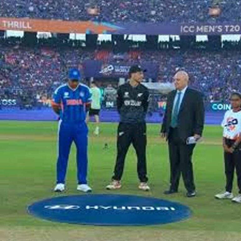 आईसीसी मेंस टी20 वर्ल्ड कप 2026 का फाइनल मुकाबला इंडिया और न्यूजीलैंड के बीच खेला जा रहा है। न्यूजीलैंड ने टॉस जीतकर पहले गेंदबाजी करने का फैसला किया है। भारत ने प्लेइंग इलेवन में कोई बदलाव नहीं किया। न्यूजीलैंड की टीम में मैकोई की जगह जैकब डफी आए हैं। दुनिया के सबसे बड़े क्रिकेट स्टेडियम में खिताबी मुकाबला खेला जाना है। अहमदाबाद के नरेंद्र मोदी स्टेडियम महामुकाबले की मेजबानी के लिए तैयार है। दोनों टीमें पहली बार टी20 विश्व कप के फाइनल में भिड़ेंगी। भारत मौजूदा चैंपियन है, जबकि न्यूजीलैंड को पहले खिताब की तलाश होगी। मौजूदा चैंपियन भारत फाइनल में दुनिया के सबसे बड़े क्रिकेट स्टेडियम मोटेरा में न्यूजीलैंड से भिड़ेगा। भारतीय टीम का लक्ष्य टी20 विश्व कप खिताब का बचाव करने वाली पहली टीम बनने के अलावा तीसरी बार खिताब जीतना है।