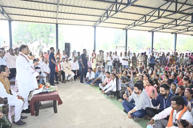 सुशासन तिहार के तहत् मुख्यमंत्री श्री विष्णु देव साय हेलीकॉप्टर से आज अचानक कांकेर जिले के मांदरी गांव पहुंचे। हेलीपेड से गांव के रास्ते पर आँगनबाड़ी भवन देखकर मुख्यमंत्री केंद्र के बच्चों से मिलने और वहां की व्यवस्था का जायजा लेने के लिए आंगनबाड़ी केंद्र पहुंचे। आँगनबाड़ी केंद्र में बच्चों ने मुख्यमंत्री का स्थानीय फूलों से तैयार किया गया गुलदस्ता भेंट कर स्वागत किया। मुख्यमंत्री ने बड़ी आत्मीयता के साथ बच्चों से घुल-मिल कर बातचीत की और उनसे आंगनबाड़ी और उनके अक्षर ज्ञान की जानकारी ली। मुख्यमंत्री के पूछने पर बच्चों ने धारा-प्रवाह कविता सुनाई। मुख्यमंत्री ने अपने हाथों से बच्चों को चाकलेट वितरित कर उन्हें दुलार किया। इस अवसर पर मुख्यमंत्री ने अधिकारियों से आँगनबाड़ी केंद्र में बच्चों को दी जाने वाली सुविधाओं और भोजन व्यवस्था की जानकारी भी ली और आवश्यक दिशा-निर्देश दिए।
