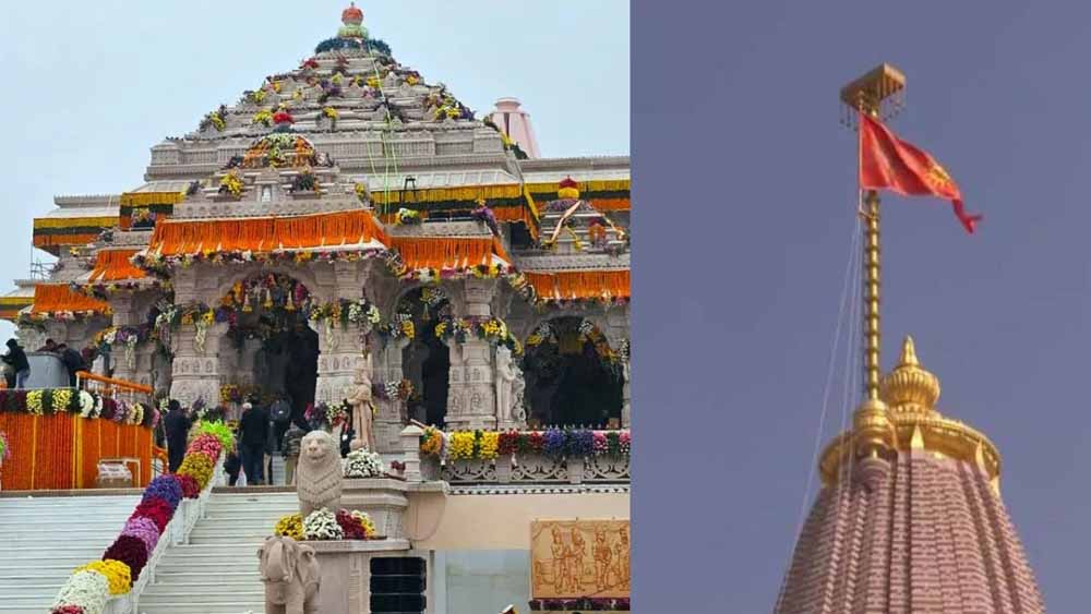 प्रधानमंत्री नरेन्द्र मोदी ने मंगलवार को अयोध्या में श्रीराम जन्मभूमि मंदिर के शिखर पर वैदिक मंत्रोच्चार के बीच केसरिया ध्वज फहराया। इस अनुष्ठान के साथ ही मंदिर का निर्माण औपचारिक रूप से पूरा हो गया। यह ध्वज पारंपरिक उत्तर भारतीय नागर शैली में बने शिखर पर फहराया गया, जबकि मंदिर के चारों ओर बना 800 मीटर का परकोटा (दक्षिण भारतीय वास्तु शैली में डिजाइन किया गया घेरा) मंदिर की शिल्प विविधता को दिखाता है।