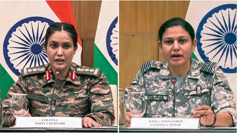 कर्नल सोफिया कुरैशी और विंग कमांडर व्योमिका सिंह ने बताया, 'पाकिस्तानी सेना ने सैन्य बुनियादी ढांचे को निशाना बनाने की नीयत से पूरी पश्चिमी सीमा पर भारतीय वायुक्षेत्र का कई बार उल्लंघन किया। पाकिस्तानी सेना ने नियंत्रण रेखा पर भारी कैलिबर वाले हथियारों से गोलाबारी भी की। अंतरराष्ट्रीय सीमा और नियंत्रण रेखा पर लेह से लेकर सरक्रीक तक 36 जगहों पर 300-400 ड्रोन का इस्तेमाल कर घुसपैठ का प्रयास किया। भारतीय सशस्त्र बलों ने काइनेटिक और नॉन काइनेटिक साधनों से कई ड्रोन मार गिराए। बड़े पैमाने पर ड्रोन के जरिए हवाई घुसपैठ का संभावित उद्देश्य देश की वायुरक्षा प्रणालियों का परीक्षण और खुफिया जानकारी जुटाना था। ड्रोन के मलबे की फॉरेंसिक जांच कराई जा रही है। प्रारंभिक जांच में तुर्किये के ड्रोन होने बात पता चली है।'