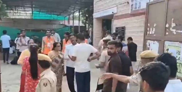 दरअसल, राजस्थान कर्मचारी चयन बोर्ड जयपुर की ओर से रविवार को दो पारियों में पटवारी सीधी भर्ती परीक्षा का आयोजन हो रहा है। पहली पारी का परीक्षा 9 शुरू हो गया है। वहीं दूसरी पारी 3 से 6 के बीच होगी। 16 सेंटरों में से 3480 अभ्यर्थी 13 सरकारी परीक्षा सेंटरों और 1560 प्राइवेट सेंटरों पर परीक्षा दे रहे हैं। कड़ी जांच पड़ताल के बाद परीक्षार्थियों को केंद्रों में प्रवेश दिया गया। परीक्षा शुरू होने से 1 घंटे पहले केंद्र में प्रवेश बन्द कर दिया गया। ऐसे में देरी से पहुंचने वाले परीक्षार्थियों को प्रवेश नही दिया गया।