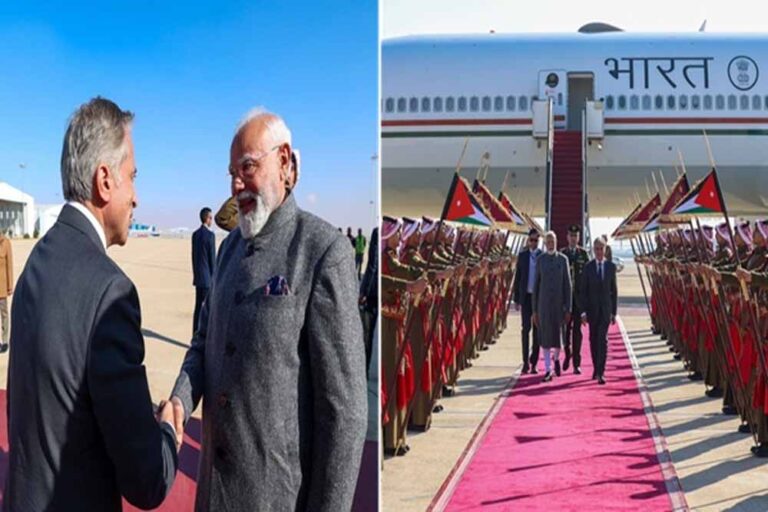 बता दें कि प्रधानमंत्री मोदी सोमवार को तीन देशों जॉर्डन, इथियोपिया और ओमान की यात्रा पर रवाना हुए। इस दौरान वे रणनीतिक साझेदारी को मजबूत करने के उद्देश्य से कई उच्चस्तरीय बैठकों में हिस्सा लेंगे। प्रधानमंत्री की यह जॉर्डन यात्रा किंग अब्दुल्ला द्वितीय इब्न अल हुसैन के निमंत्रण पर हो रही है और दोनों देशों के बीच राजनयिक संबंधों की स्थापना के 75 वर्ष पूरे होने के अवसर पर इसे खास माना जा रहा है।