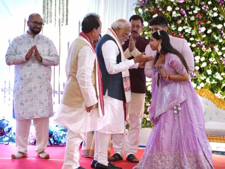 इसके बाद प्रधानमंत्री मोदी उपमुख्यमंत्री विजय कुमार सिन्हा के आवास पर जाकर उनके बेटे गोविंद भारद्वाज और होने वाली बहू शांभवी को आशीर्वाद दिया। उपमुख्यमंत्री ने कहा, 'यह हमारे परिवार के लिए गर्व का क्षण है कि प्रधानमंत्री मोदी मेरे बेटे की शादी की रस्म के लिए आशीर्वाद देने हमारे घर आए। मैंने उन्हें अपने बेटे की शादी के लिए भी आमंत्रित किया है।' मोदी शुक्रवार को अपनी यात्रा के दूसरे दिन रोहतास जिले के बिक्रमगंज में एक जनसभा को संबोधित करेंगे। इस दौरान वह करीब 50 हजार करोड़ रुपये की लागत वाली कई सड़कों और बिजली परियोजनाओं का शुभारंभ और शिलान्यास करेंगे।