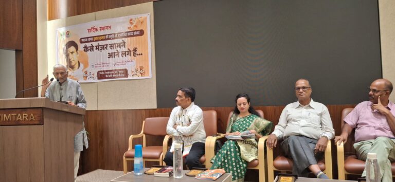 रायपुर (mediasaheb.com)। वीमतारा हॉल, रायपुर में महान शायर दुष्यंत कुमार की स्मृति में नवरंग काव्य मंच द्वारा आयोजित काव्य संध्या “कैसे मंज़र सामने आने लगे हैं का आयोजन किया गया “इस कार्यक्रम में वर्तमान में विभिन्न मानवीय मूल्यों संवेदनाओं को चिन्हित करने वाली विभिन्न कविताओं एवम गजलो का पाठ किया गया जो आज की युवा पीढ़ी में ऊर्जा एवम प्रेरणा का संचार करती है जिनमे वृद्धों का सम्मान , एकता की भावना , नैतिक मूल्यों की रक्षा, युवा बेरोजगार के प्रति चिंता, देश के मौजूदा हालत और उस पर विचार के सुधार जैसे विषय शामिल रहे कार्यक्रम सफल और रसमय रहा। कार्यक्रम की मुख्य अतिथि मैट्स विश्वविद्यालय के हिन्दी विभाग की विभागाध्यक्ष डा. रेशमा अंसारी थी।