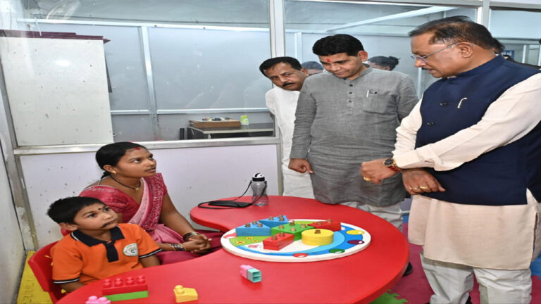 मुख्यमंत्री विष्णु देव साय ने आज बलौदाबाजार में कृषि उपज मंडी परिसर में संचालित मनोविकास केंद्र का अवलोकन किया। उन्होंने विशेष आवश्यकता वाले बच्चों से आत्मीय बातचीत कर उनकी प्रगति की जानकारी ली और अभिभावकों से फीडबैक प्राप्त किया। बच्चों द्वारा प्रस्तुत योग, संगीत और सांस्कृतिक गतिविधियों को देखकर मुख्यमंत्री भावविभोर हो उठे और उनकी प्रतिभा की मुक्त कंठ से सराहना की।