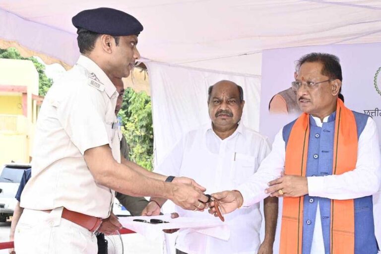 मुख्यमंत्री विष्णु देव साय ने कहा है कि हमारी सरकार सड़क परिवहन और यातायात को सुरक्षित और सुगम बनाने के लिए सर्वाेच्च प्राथमिकता दे रही है। परिवहन और यातायात सुरक्षा में लगे उड़नदस्ता दल को 48 नवीन वाहनों की तैनाती से दुर्घटनाओं में निश्चित रूप से कमी आएगी, यातायात सुग़म होगा और लोगों में ट्रैफिक नियमों के पालन को लेकर जागरूकता बढ़ेगी। साय आज अपने निवास कार्यालय में आयोजित कार्यक्रम को सम्बोधित कर रहे थे। उन्होंने इस मौके पर परिवहन विभाग के निरीक्षकों को इन वाहनों की चाबी सौंपी।