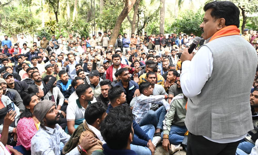 उपमुख्यमंत्री एवं गृहमंत्री विजय शर्मा ने आज अपने सिविल लाइन रायपुर स्थित निज निवास में अपनी पूर्व घोषणा अनुरूप छत्तीसगढ़ पुलिस आरक्षक भर्ती के अभ्यर्थियों से रूबरू होकर उनसे सीधा संवाद किया। अपने वादे के अनुसार वे ठीक 10 बजे अभ्यर्थियों के बीच भर्ती प्रक्रिया के प्रमुख एडीजी एसपीआर कल्लूरी, आईजी बद्री नारायण मीना के साथ उपस्थित हुए। इस दौरान उन्होंने कहा कि छत्तीसगढ़ पुलिस आरक्षक भर्ती प्रक्रिया पूरी तरह से पारदर्शी और विश्वसनीय तरीके से सम्पादित की गई है। शासन अपनी भर्ती प्रक्रिया में पारदर्शिता के लिए पूर्ण रूप से प्रतिबद्ध है। उन्होंने भर्ती प्रक्रिया के संबंध में अभ्यर्थियों की सभी मांगों और समस्याओं पर सभी के बीच जमीन में बैठकर हर समस्या पर बिंदुवार बात की।