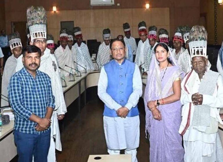 मुख्यमंत्री विष्णु देव साय से छत्तीसगढ़ विधानसभा परिसर स्थित समिति कक्ष में अखिल भारतीय रामनामी महासभा के प्रतिनिधि मंडल ने सौजन्य भेंट की। प्रतिनिधिमंडल ने सक्ती जिले के ग्राम जमगहन में 9 अप्रैल को आयोजित होने वाले बड़े भजन रामनामी मेला में मुख्यमंत्री साय को आमंत्रित किया। मुख्यमंत्री ने इस निमंत्रण के लिए महासभा के पदाधिकारियों का आभार व्यक्त किया और उन्हें शुभकामनाएँ दीं।