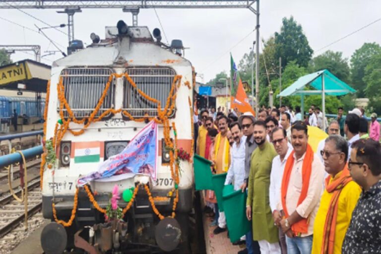 हरी झंडी दिखाकर ट्रेन को किया रवाना