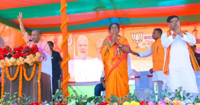 यूपी के मुख्यमंत्री ने बिहार की पूर्व उप मुख्यमंत्री व बेतिया विधानसभा क्षेत्र से भाजपा प्रत्याशी रेणु देवी के लिए की कमल खिलाने की अपील