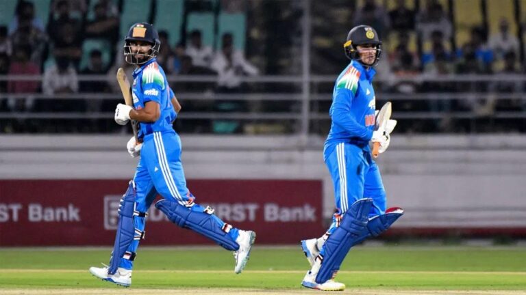 भारत-ए की प्लेइंग इलेवन: अभिषेक शर्मा, ऋतुराज गायकवाड़, रियान पराग, तिलक वर्मा (कप्तान), ईशान किशन (विकेटकीपर), नीतीश कुमार रेड्डी, निशांत सिंधु, हर्षित राणा, विप्रज निगम, अर्शदीप सिंह और प्रसिद्ध कृष्णा.