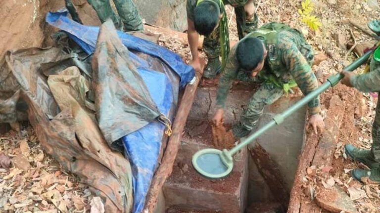 कोबरा 208 की टीम द्वारा पूरे क्षेत्र में सर्चिंग के दौरान मुर्कराजगुटटा की पहाड़ी जंगल से माओवादी सामान के छिपाने के जगह को खोजकर नष्ट किया गया।