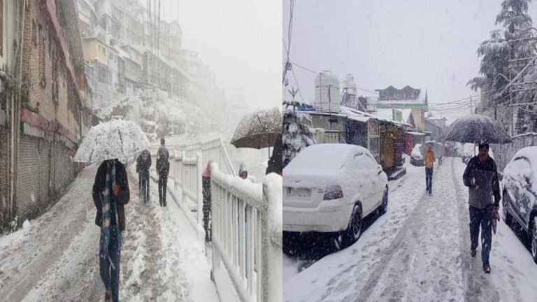 हिमाचल प्रदेश में कुदरत का रौद्र और खूबसूरत रूप एक साथ देखने को मिल रहा है। पिछले 24 घंटों से जारी भारी बर्फबारी ने पूरे प्रदेश को सफेद चादर से ढंक दिया है। राजधानी शिमला के जाखू में जहाँ आधा फीट बर्फ गिरी है, वहीं मशहूर पर्यटन स्थल कुफरी और नारकंडा में 1-1 फीट तक बर्फ जम चुकी है। मनाली, चंबा और लाहौल-स्पीति के ऊंचाई वाले इलाकों में भी भारी हिमपात दर्ज किया गया है। मौसम के इस मिजाज ने पर्यटकों के चेहरे तो खिला दिए हैं, लेकिन स्थानीय प्रशासन और निवासियों के लिए मुश्किलें खड़ी कर दी हैं। तापमान में भारी गिरावट और ब्लैक-आउट बर्फबारी और बारिश के कारण हिमाचल के तापमान में भारी गिरावट आई है। प्रदेश का अधिकतम तापमान सामान्य से 8 डिग्री नीचे चला गया है, जबकि पिछले 24 घंटों में पारे में करीब 13 डिग्री सेल्सियस की गिरावट दर्ज की गई है।