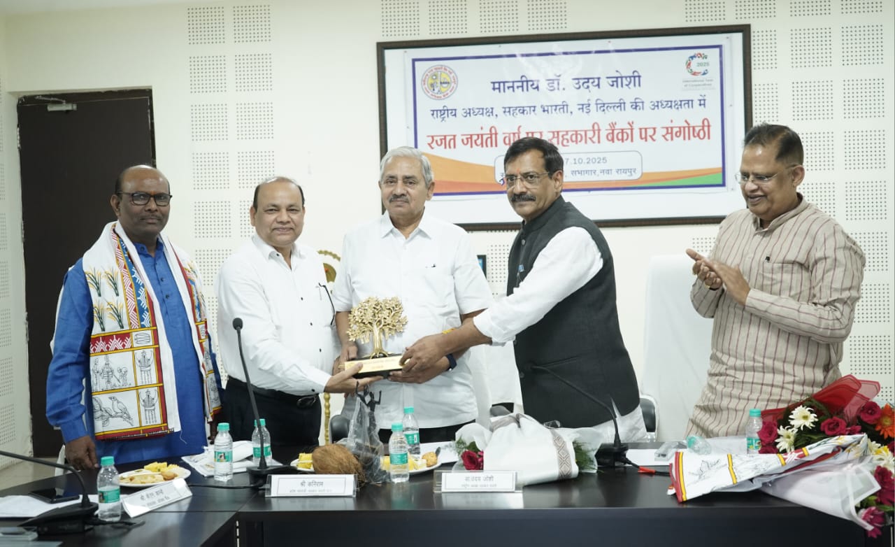 रायपुर,(mediasaheb.com)| आज नवा रायपुर, अटल नगर में स्थित छत्तीसगढ़ राज्य सहकारी बैंक ( अपेक्स बैंक) परिसर में छत्तीसगढ़ के रजत जयंती वर्ष पर सहकारी बैंकों की संगाष्ठी का आयोजन किया गया। इस संगोष्ठी की अध्यक्षता सहकार भारती के राष्ट्रीय अध्यक्ष डा0उदय जोशी द्वारा किया गया। संगोष्ठी में पूर्व केबिनेट मंत्री व बिलासपुर विधायक श्री अमर अग्रवाल, सहकार भारती छत्तीसगढ़ महामंत्री श्री कनिराम, अपेक्स बैंक प्राधिकृत अधिकारी श्री केदार नाथ गुप्ता, सहकार भारती कार्यालय मंत्री श्री सौरभ शर्मा, अध्यक्ष प्रगति महिला नागरिक सहकारी बैंक भिलाई तथा अपेक्स बैंक प्रबंधक संचालक एवं अपर आयुक्त सहकारिता श्री के0एन कान्डे की विशिष्ट उपस्थिति रही ।