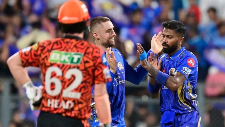 मुंबई इंडियंस और सनराइजर्स हैदराबाद के बीच आईपीएल 2025 का 33वां मुकाबला खेला जा रहा है। सनराइजर्स हैदराबाद ने पहले बल्लेबाजी करते हुए 20 ओवर में 5 विकेट खोकर 162 रन बनाए। हैदराबाद की ओर से अभिषेक शर्मा ने सर्वाधिक 40 रन बनाए। मुंबई के लिए विल जैक्स ने दो विकेट लिए।