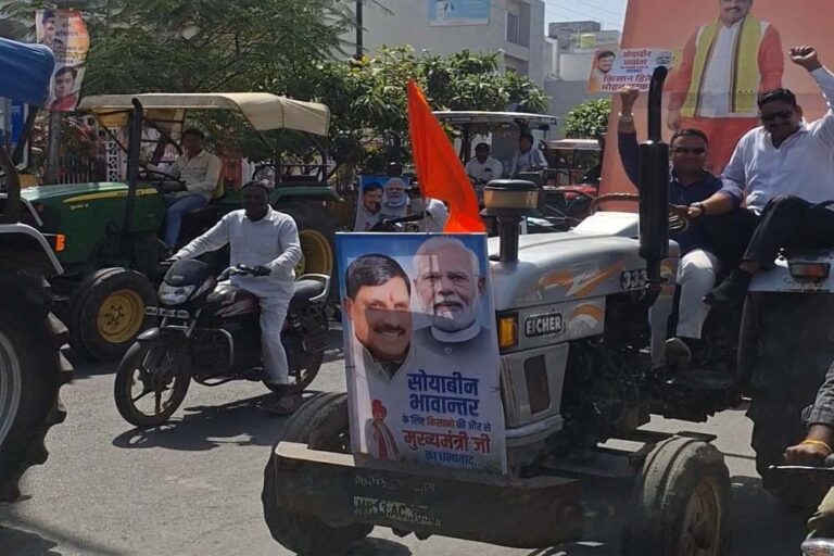 मुख्यमंत्री डॉ मोहन यादव का मानना है कि किसानों की समृद्धि ही प्रदेश की प्रगति का आधार है। इसी भावना के साथ मध्यप्रदेश सरकार ने सोयाबीन उत्पादक किसानों के लिए भावांतर योजना लागू की है। बता दें, आज देपालपुर में किसानों का उत्साह देखते ही बनता था। किसानों ने 11 अक्टूबर की रात ही ट्रैक्टर रैली की सारी तैयारियां कर ली थीं। ट्रैक्टरों पर अलग-अलग तरह के स्लोगन और पोस्टर लगाए गए। उसके बाद किसान एक जगह इकट्ठे हुए और सैकड़ों ट्रैक्टरों को लेकर देपालपुर की सड़कों पर निकल पड़े। किसानों ने रैली से शुरू होने से अंत तक सीएम डॉ. यादव के समर्थन में नारे लगाए। दूसरी ओर, उज्जैन में किसानों की ट्रैक्टर रैली कृषि उपज मंडी परिसर से शुरू होकर आगर रोड, चामुंडा माता चौराहा, फ्रीगंज ओवर ब्रिज, तीन बत्ती चौराहा होते हुए दशहरा मैदान पहुंची। इस रैली में शामिल ट्रैक्टरों पर मुख्यमंत्री डॉ. यादव के प्रति आभार व्यक्त करने वाले कई पोस्टर और बैनर लगे थे।