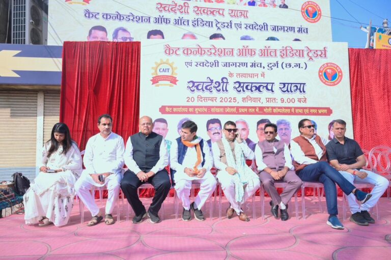 रायपुर (mediasaheb.com) | CAIT एवं स्वदेशी जागरण मंच के संयुक्त तत्वावधान में आयोजित स्वदेशी संकल्प यात्रा का शुभारंभ 27 नवम्बर 2025 को राजनांदगांव जिले से हुआ था, जो कि प्रदेष में लगभग 25 दिनों में 2500 किलोमीटर की यात्रा पूर्ण करते हुए 20 दिसम्बर 2025 को दुर्ग जिले में ऐतिहासिक एवं भव्य स्वागत के साथ सफलतापूर्वक संपन्न हुई।