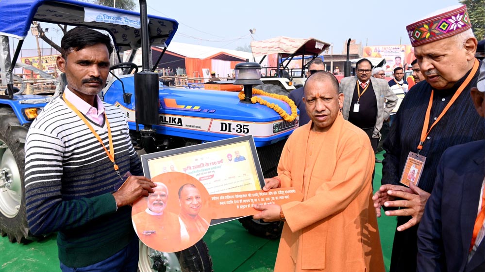 – कार्यक्रम में मुख्यमंत्री योगी आदित्यनाथ ने किसानों को ट्रैक्टर की चाबी सौंपते हुए विभिन्न योजनाओं के लाभार्थी किसानों को चेक व स्वीकृति पत्र भी प्रदान किए।