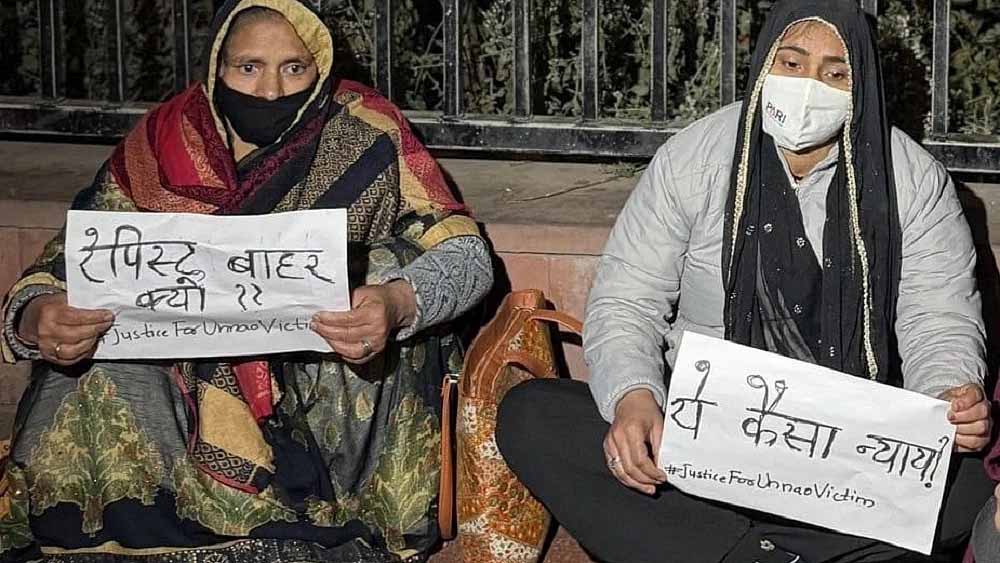 उन्नाव रेप केस में हाई कोर्ट के फैसले के बाद से फिर एक बार राजनीति गरमा गई है। आज दिल्ली के जंतर-मंतर में रेप पीड़िता प्रदर्शन करने पहुंची हैं। उनके साथ उनकी मां भी हैं। हालांकि इस दौरान एक भीड़ के बीच एक व्यक्ति भाजपा जिंदाबाद के नारे लगा रहा था। इसे लेकर पीड़िता की मां ने विरोध किया। इसके बाद उनकी मां बेहोश हो गईं। उन्नाव रेप पीड़िता की मां ने इस दौरान आरोपी कुलदीप सेंगर के लिए फांसी की भी मांग की थी।