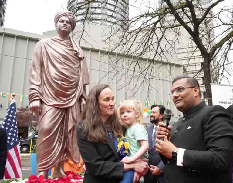 भारतीय दार्शनिक और आध्यात्मिक गुरु स्वामी विवेकानंद की अमेरिका में पहली जीवन-आकार की कांस्य प्रतिमा का अनावरण सिएटल के व्यस्त वेस्टलेक स्क्वायर में किया गया। यह अमेरिका में किसी भी शहर सरकार द्वारा होस्ट की गई स्वामी विवेकानंद की पहली ऐसी प्रतिमा है।