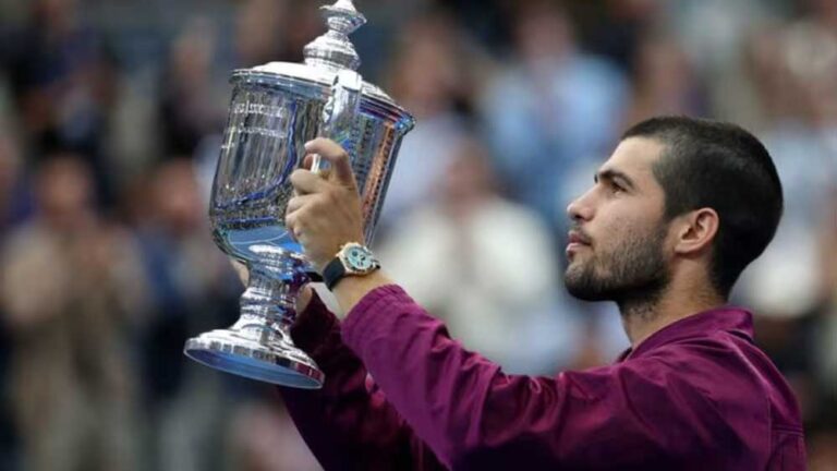कार्लोस अल्कारेज ने रविवार को यूएस ओपन फाइनल में जैनिक सिनर को 6-2, 3-6, 6-1, 6-4 से हराकर खिताब अपने नाम किया. यह लगातार तीसरा ग्रैंड स्लैम टूर्नामेंट रहा जिसमें दोनों खिलाड़ी खिताबी मुकाबले में आमने-सामने आए. इस जीत के साथ अल्कारेज ने फ्लशिंग मीडोज पर अपना दूसरा और कुल मिलाकर छठा ग्रैंड स्लैम खिताब जीता.