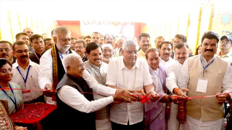 उपराष्ट्रपति जगदीप धनखड़, राज्यपाल मंगुभाई पटेल एवं मुख्यमंत्री डॉ. मोहन यादव ने नरसिंहपुर में कृषि उद्योग समागम-2025 में कृषि प्रदर्शनी का शुभारंभ किया।