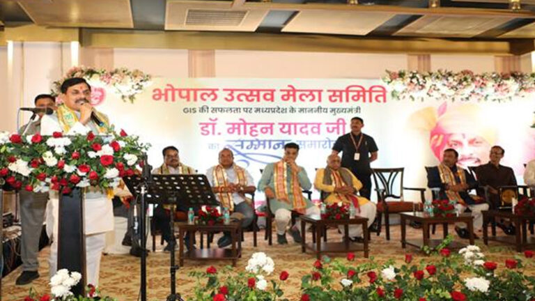 मुख्यमंत्री डॉ. मोहन यादव ने कहा है कि देश के चहुंमुखी विकास में मध्यप्रदेश का योगदान अव्वल रहेगा। भारत को विश्व की तीसरी सबसे बड़ी अर्थव्यवस्था बनाने में मध्यप्रदेश पीछे नहीं रहेगा। उन्होंने कहा कि हम विरासत से विकास की ओर बढ़ रहे हैं। अगले 5 साल में हम प्रदेश का सालाना बजट दोगुना कर देंगे। कोई नया टैक्स नहीं लगाएंगे बल्कि नागरिकों की आय बढ़ाकर अपने बजट को बढ़ाने की दिशा में आगे बढ़ेंगे। उन्होंने कहा कि भोपाल की प्राकृतिक सम्पदा और इसके पुरा-इतिहास के संवर्धन में कोई कसर नहीं रखी जाएगी। उन्होंने कहा कि उनका सौभाग्य है कि उन्हें जनता की सेवा का अवसर मिला है। मुख्यमंत्री डॉ. यादव बुधवार को भोपाल उत्सव मेला समिति द्वारा आयोजित नागरिक सम्मान समारोह को संबोधित कर रहे थे।