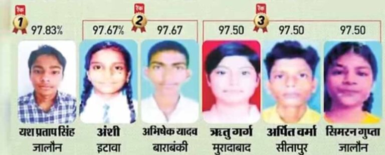हाईस्कूल की परीक्षा में 97.83 अंकों के साथ यूपी में टॉप करने वाले जालौन के यश प्रताप सिंह ने बताया कि वह रोजाना 10 से 12 घंटे पढ़ाई करते थे। उन्हें उम्मीद थी कि उनका प्रदेश के टॉपर लिस्ट में स्थान जरूर आएगा। यश ने बताया कि वह भविष्य में आईएएस बनकर देश की सेवा करना चाहते हैं।