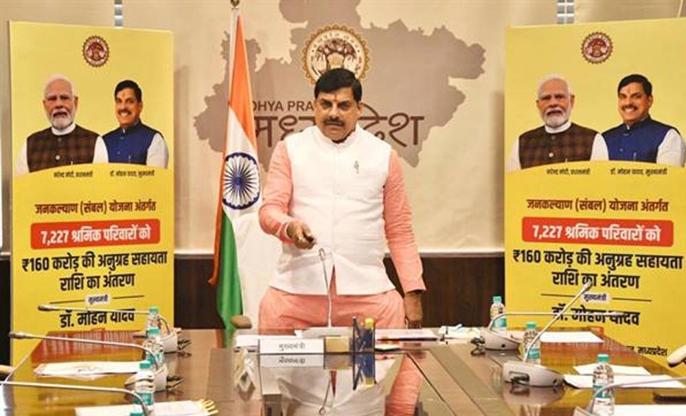 प्रदेश के 7227 श्रमिक हितग्राहियों को दिया 160 करोड़ रुपए का संबल