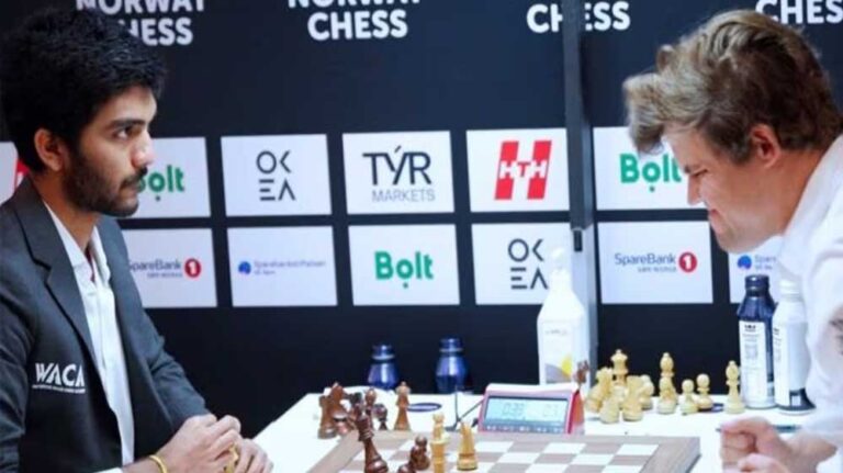विश्व चैंपियन डी गुकेश ने क्रोएशिया के जगरेब में ग्रैंड शतरंज टूर के छठे दौर में नॉर्वे के मैग्नस कार्लसन को हराया। इस धमाकेदार जीत के साथ टूर्नामेंट में उनके 10 अंक हो गए हैं। गुकेश ने पहले दिन सुपर यूनाईटेड रैपिड एवं ब्लिट्ज शतरंज टूर्नामेंट के पहले तीन दौर समाप्त होने के बाद वह साथ संयुक्त रूप से शीर्ष स्थान पर बने हुए थे। इसके बाद उन्होंने चौथे और पांचवें राउंड में उज्बेकिस्तान के नोदिरबेक अब्दुसत्तोरोव और अमेरिकी ग्रैंडमास्टर फैबियानो कारूआना को हराकर उन्होंने अपना दबदबा जारी रखा, इसके साथ ही उनकी भिड़ंत कार्लसन के साथ होनी कंफर्म हुई।